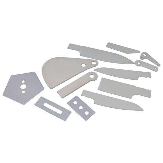 - Specialized blades for textile cutting, battery separator trimming, and capsule cutting machines.